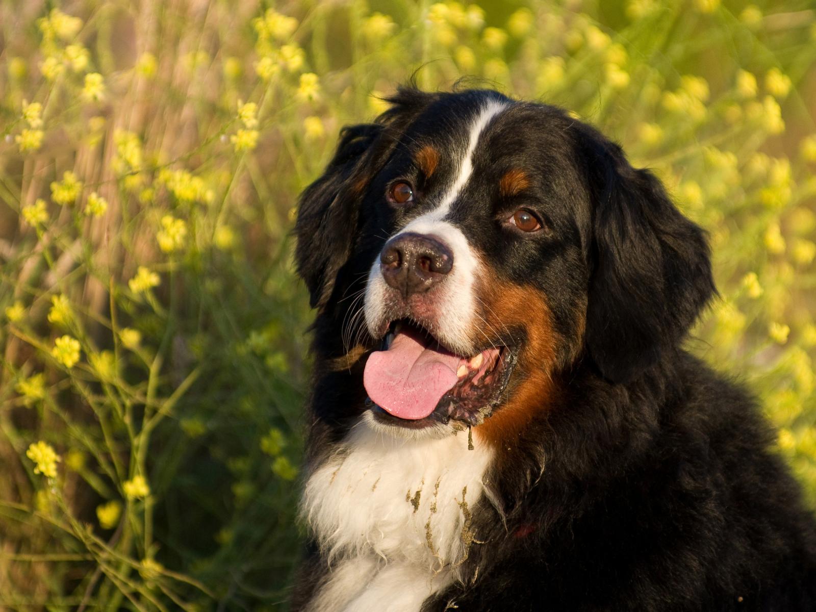 Wallpaper Bernese Mountain Dog in flowers