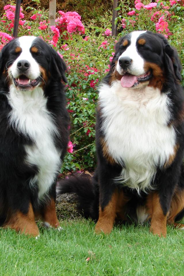 Wallpaper Bernese Mountain Dogs on a background of bushes