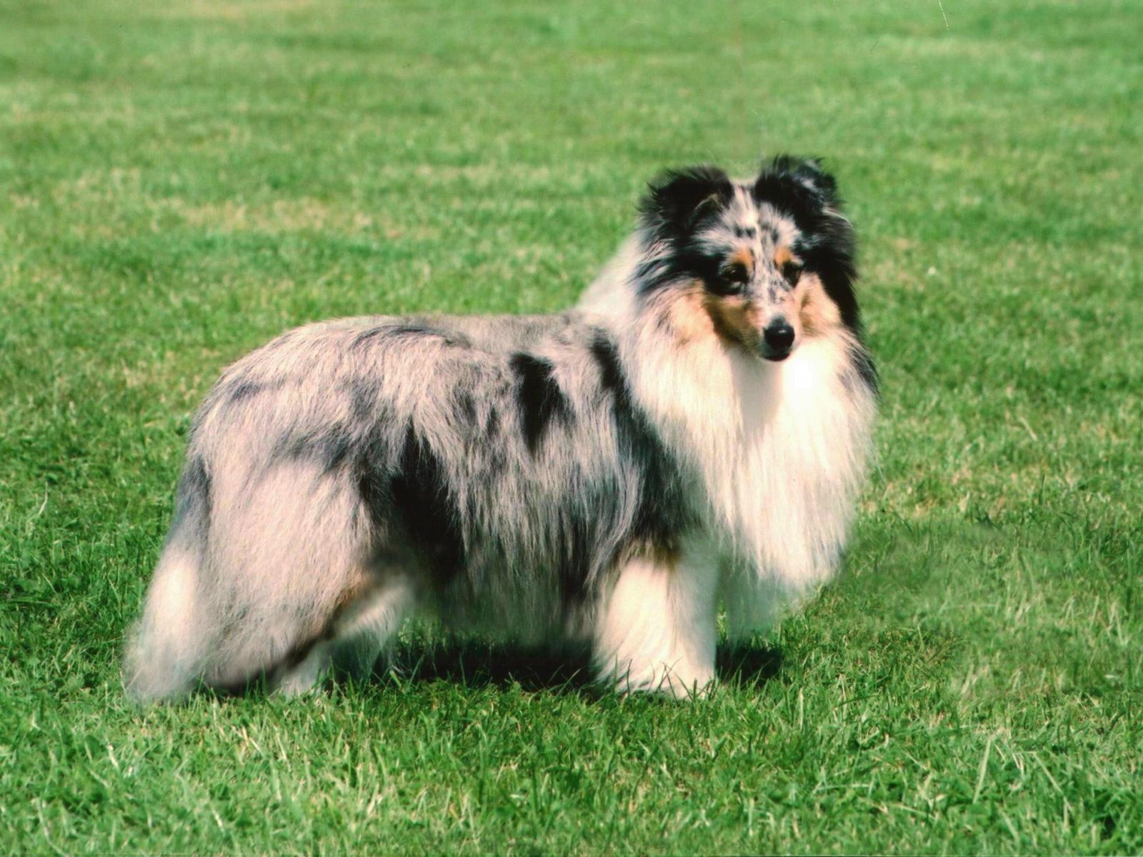 Wallpaper Sheltie breed dog posing on the grass in the summer