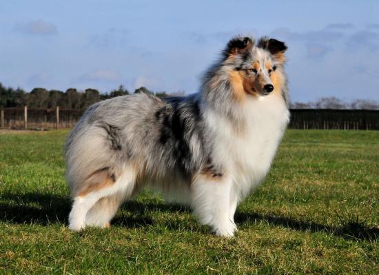 Wallpaper Sheltie breed dog posing on the grass in the summer