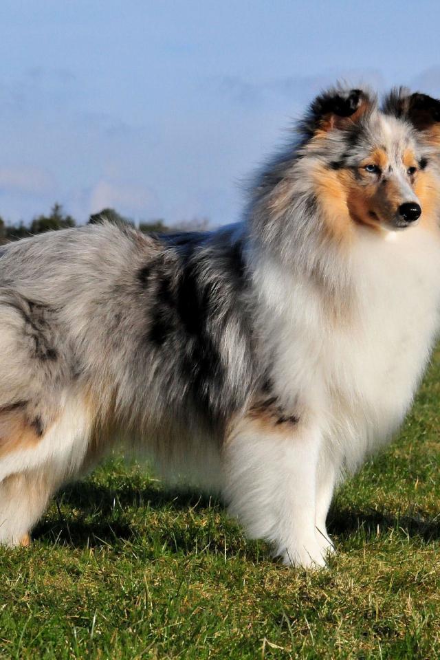 » Wallpaper Sheltie breed dog posing outdoors