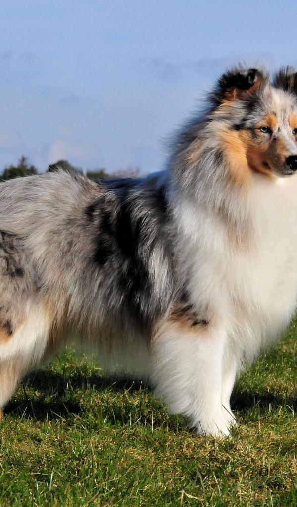 Wallpaper Sheltie breed dog posing on the grass in the summer