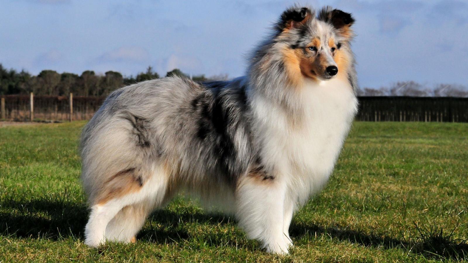 Wallpaper Sheltie breed dog posing outdoors