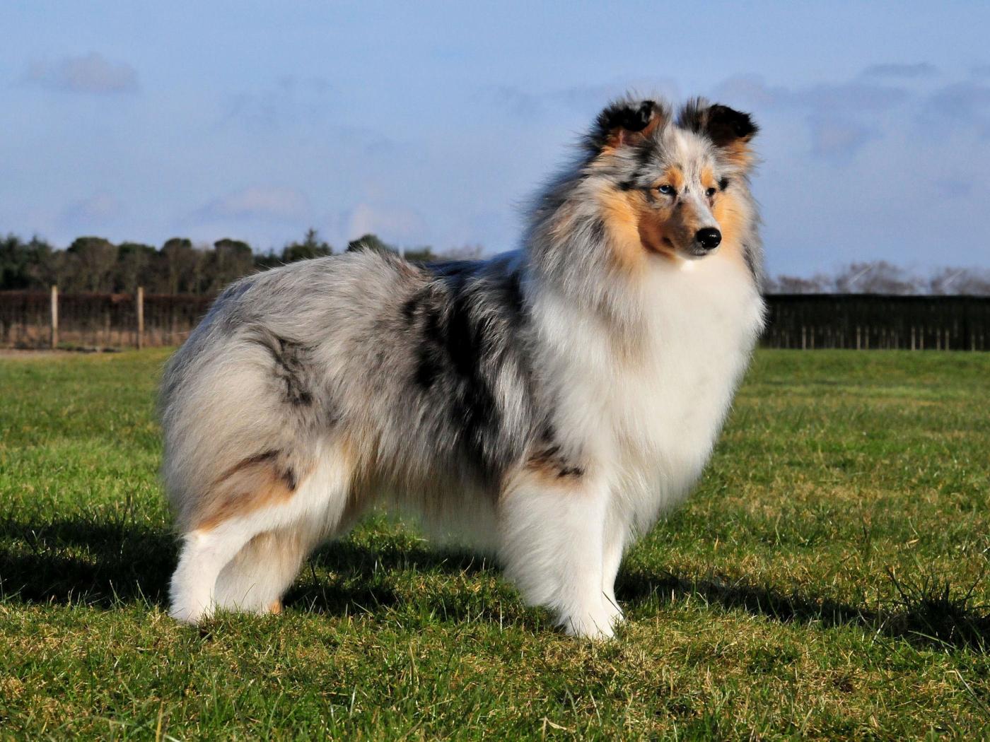 Wallpaper Sheltie breed dog posing on the grass in the summer