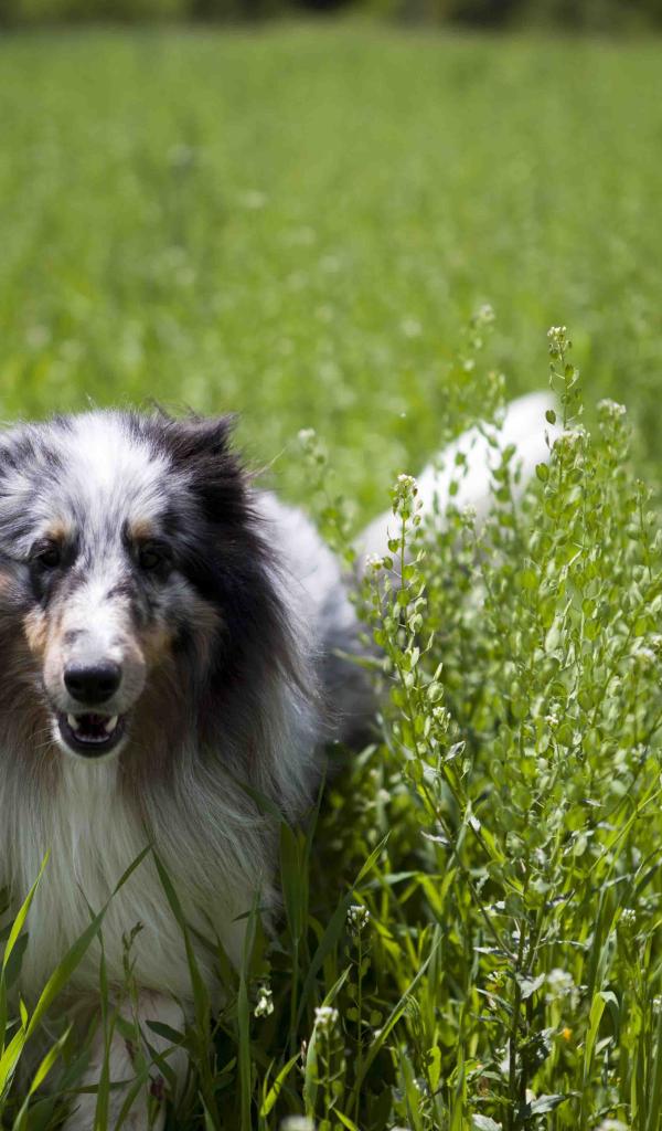 Wallpaper Beautiful Sheltie breed dog in the high grass