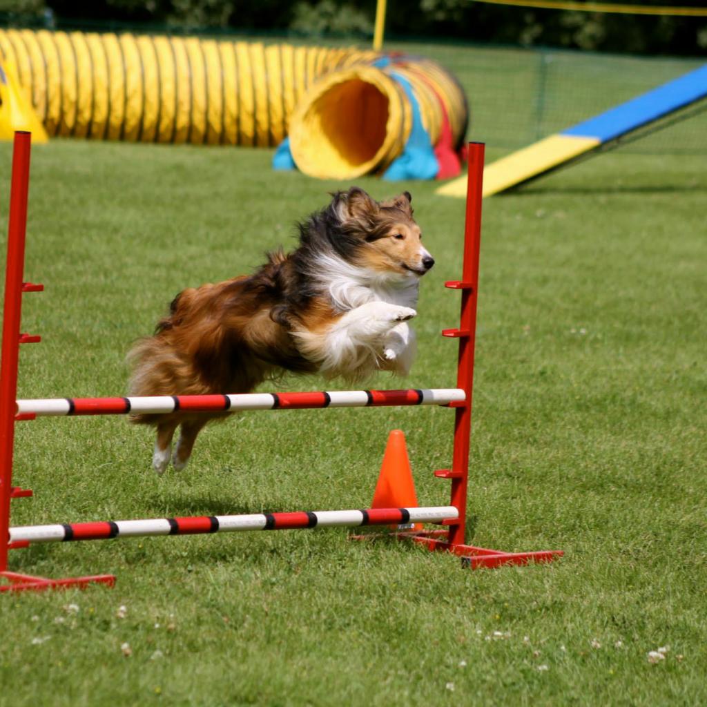 Wallpaper Sheltie breed dog executes the command barrier