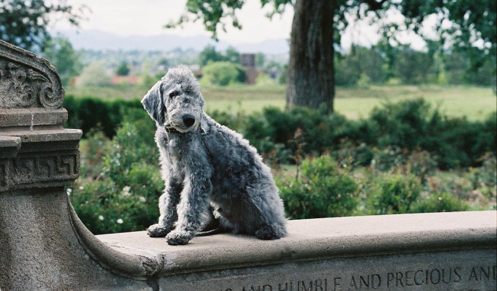 Wallpaper Bedlington Terrier posing on the fence