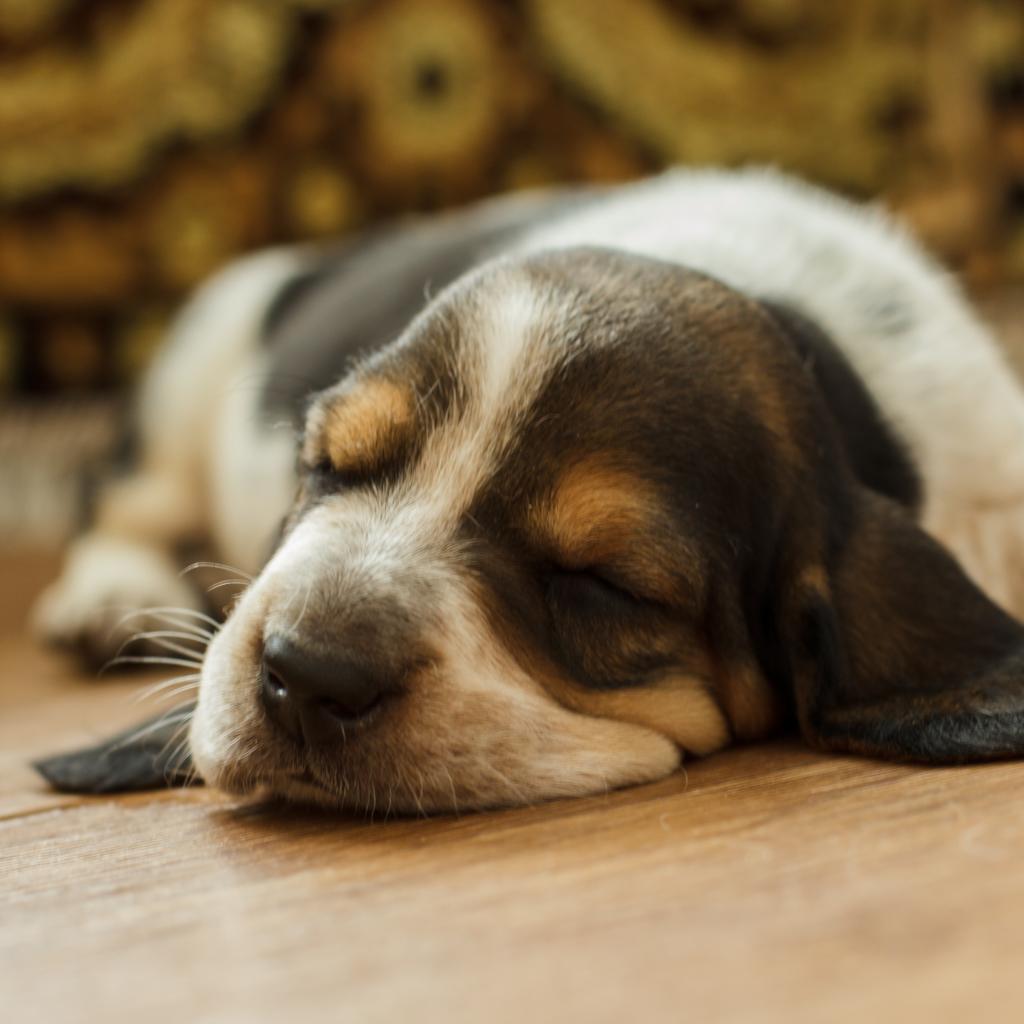 Wallpaper Basset hound puppy fell asleep on the floor