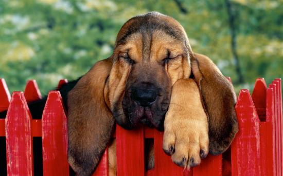 Wallpaper Basset Hound fell asleep on the fence