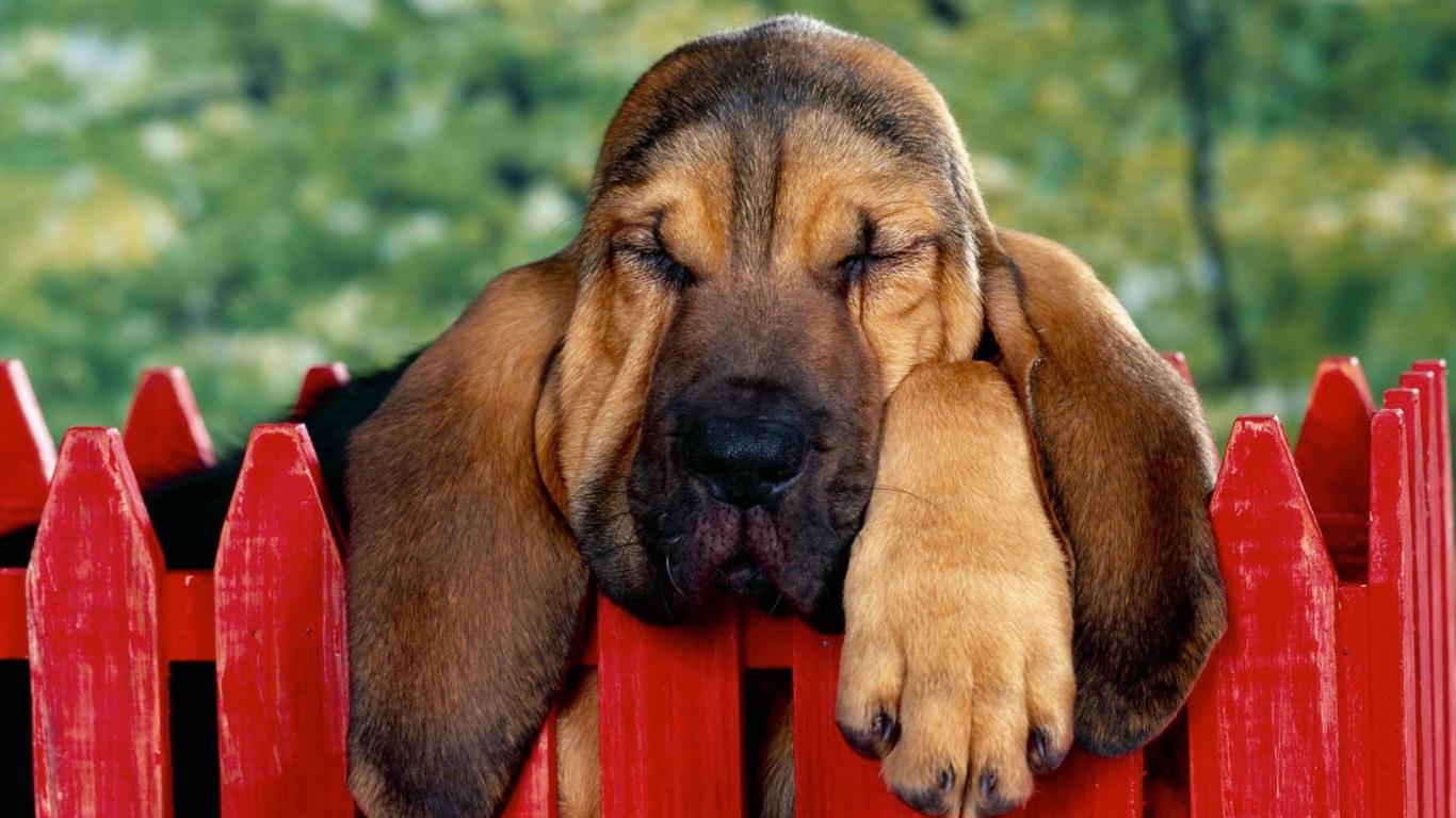 Wallpaper Basset Hound fell asleep on the fence