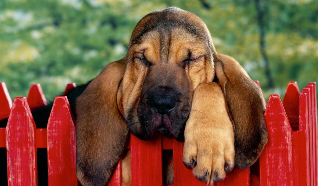 Wallpaper Basset Hound fell asleep on the fence