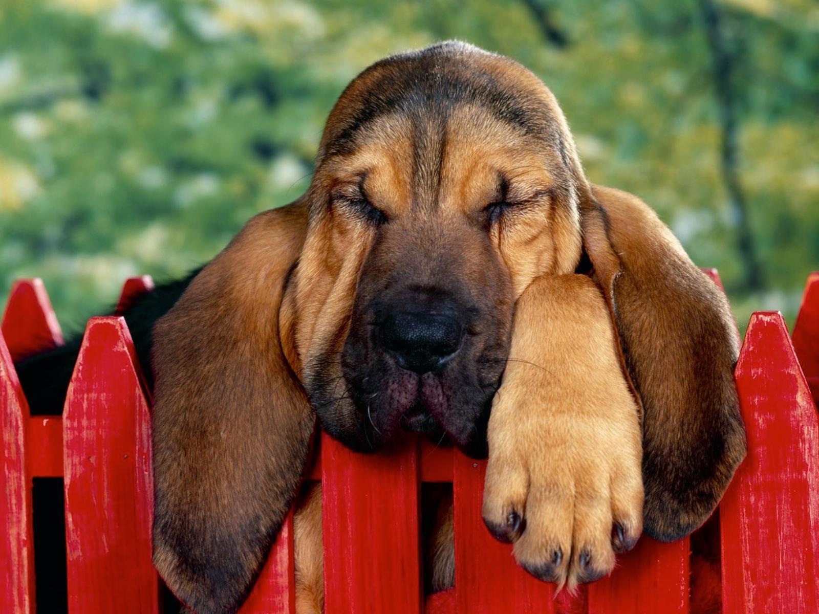 Wallpaper Basset Hound fell asleep on the fence