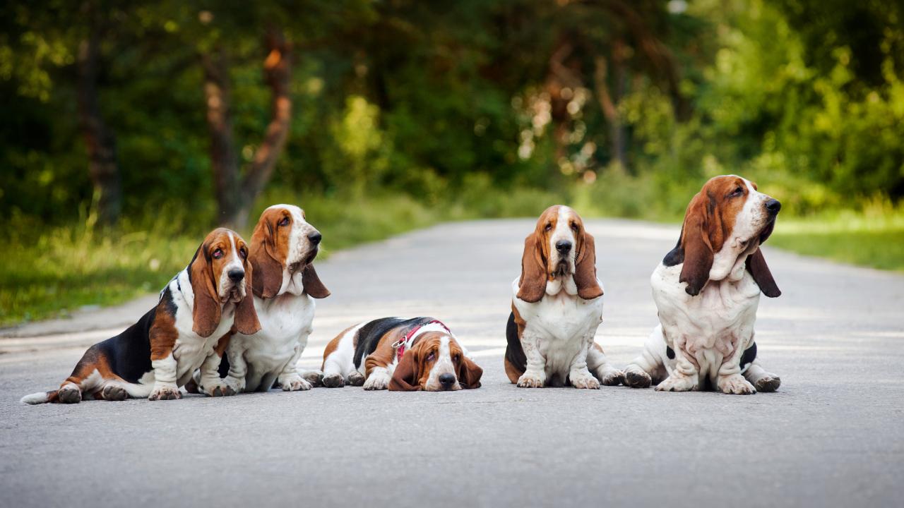 Wallpaper Family Basset Hound sitting on the road