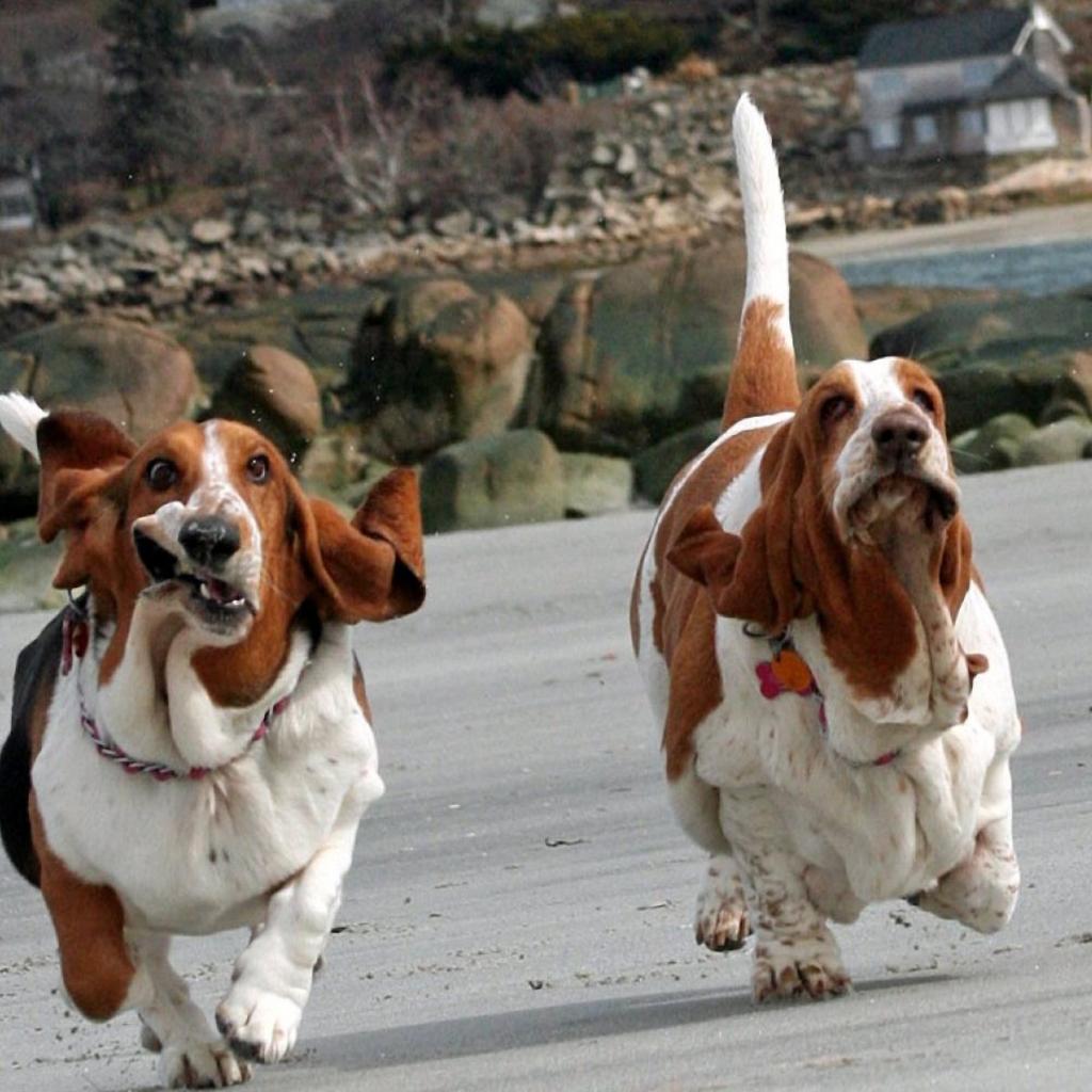 Wallpaper Funny Basset Hounds running