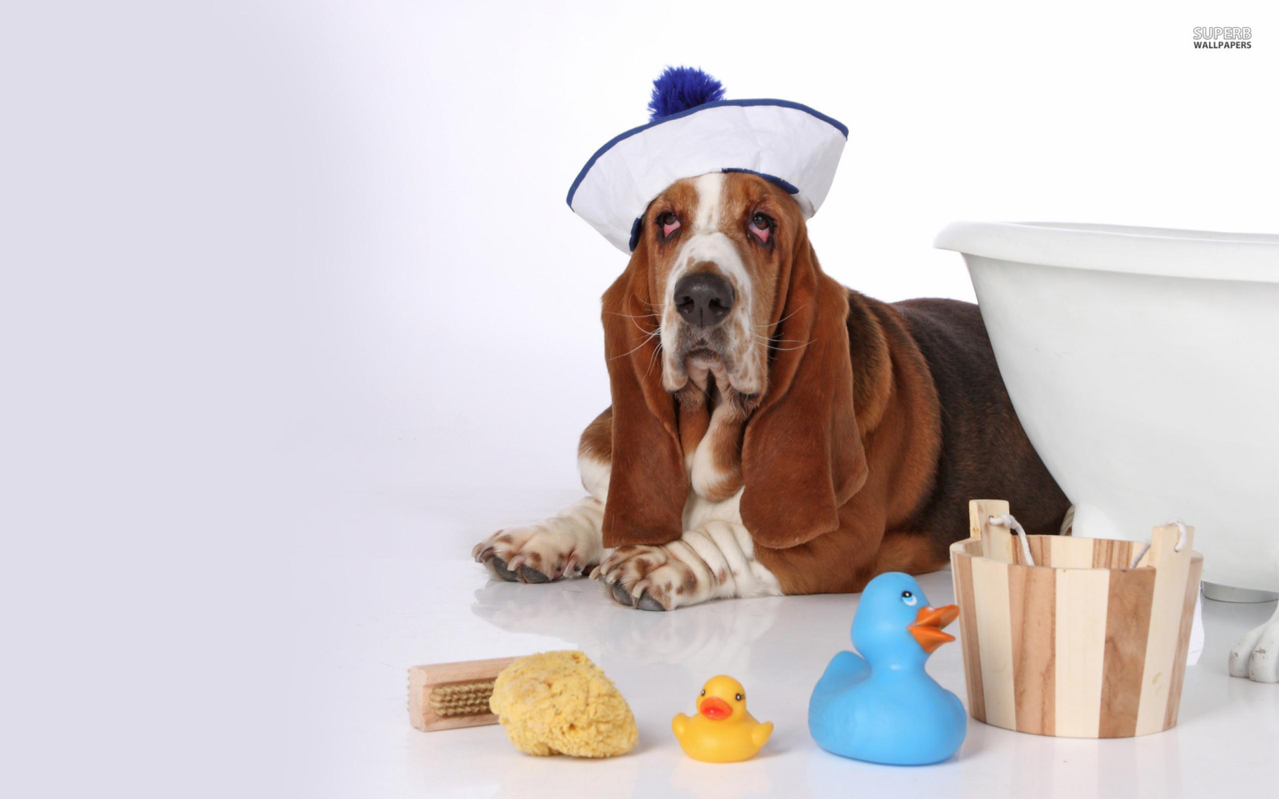 Wallpaper Basset hound in a sailor suit