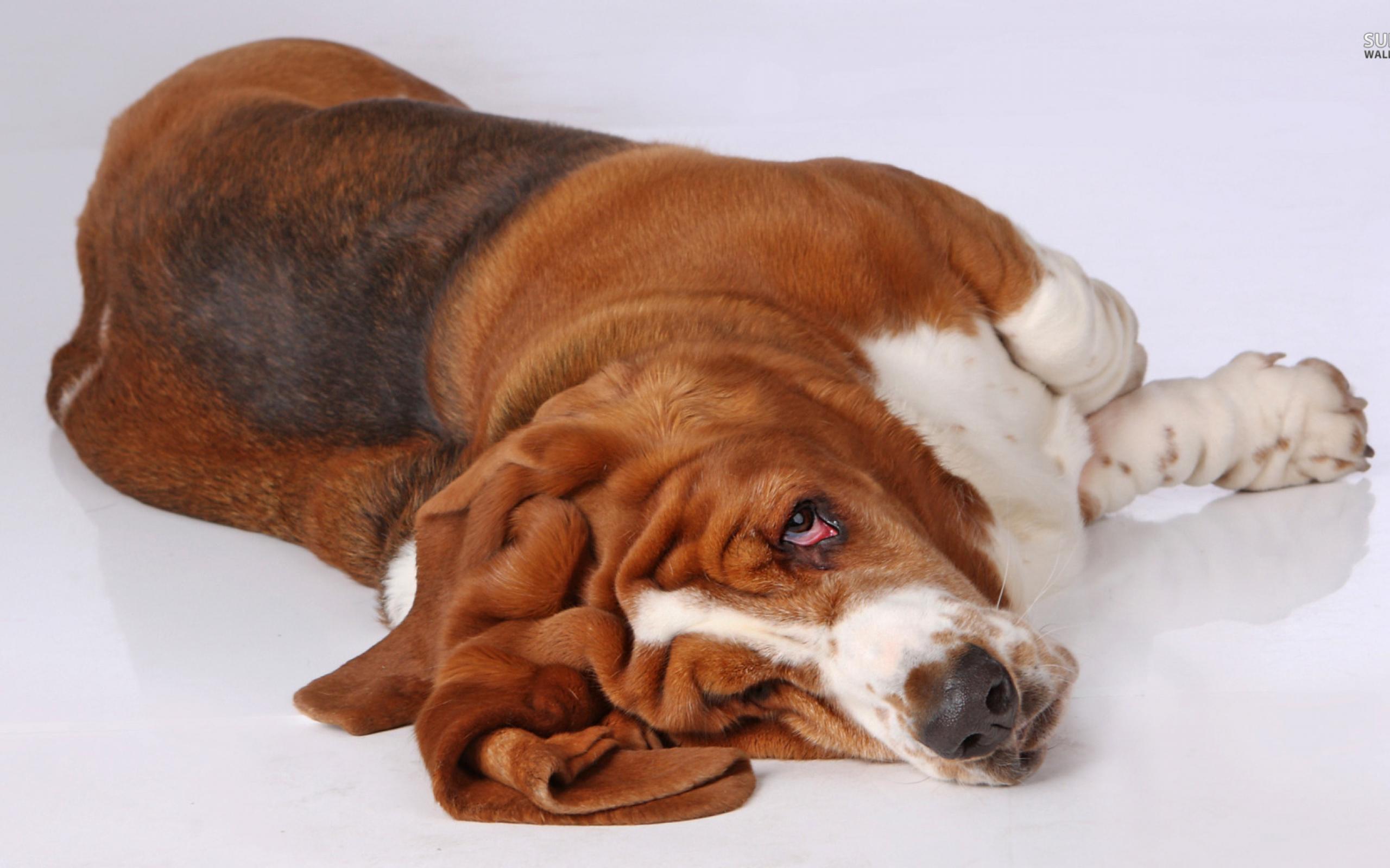 Wallpaper Funny basset hound sprawled on the floor
