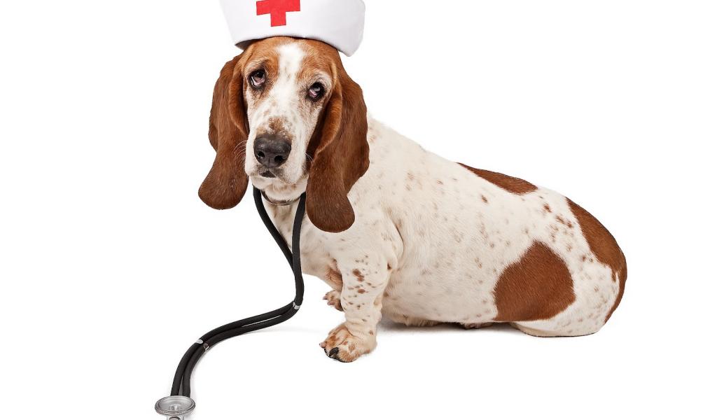 Wallpaper Basset hound in nurse costume