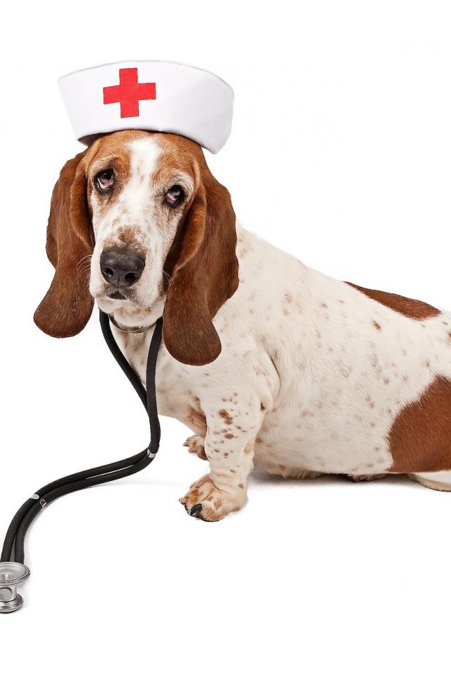 Wallpaper Basset hound in nurse costume
