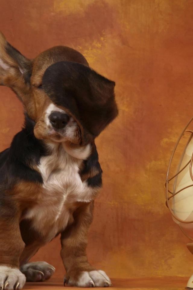 Wallpaper A Basset Hound and fan