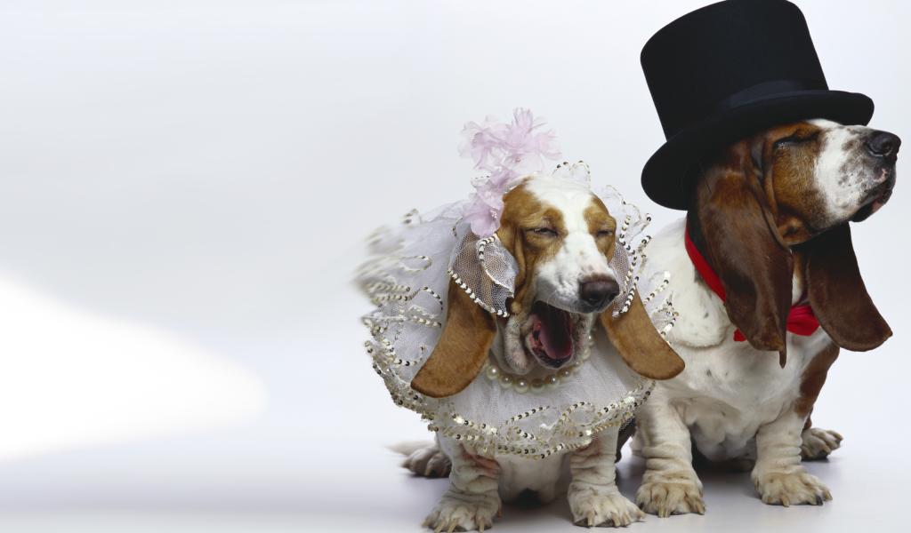 Wallpaper Dressed Basset Hound on white background