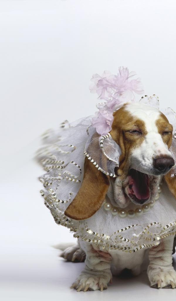 Wallpaper Dressed Basset Hound on white background