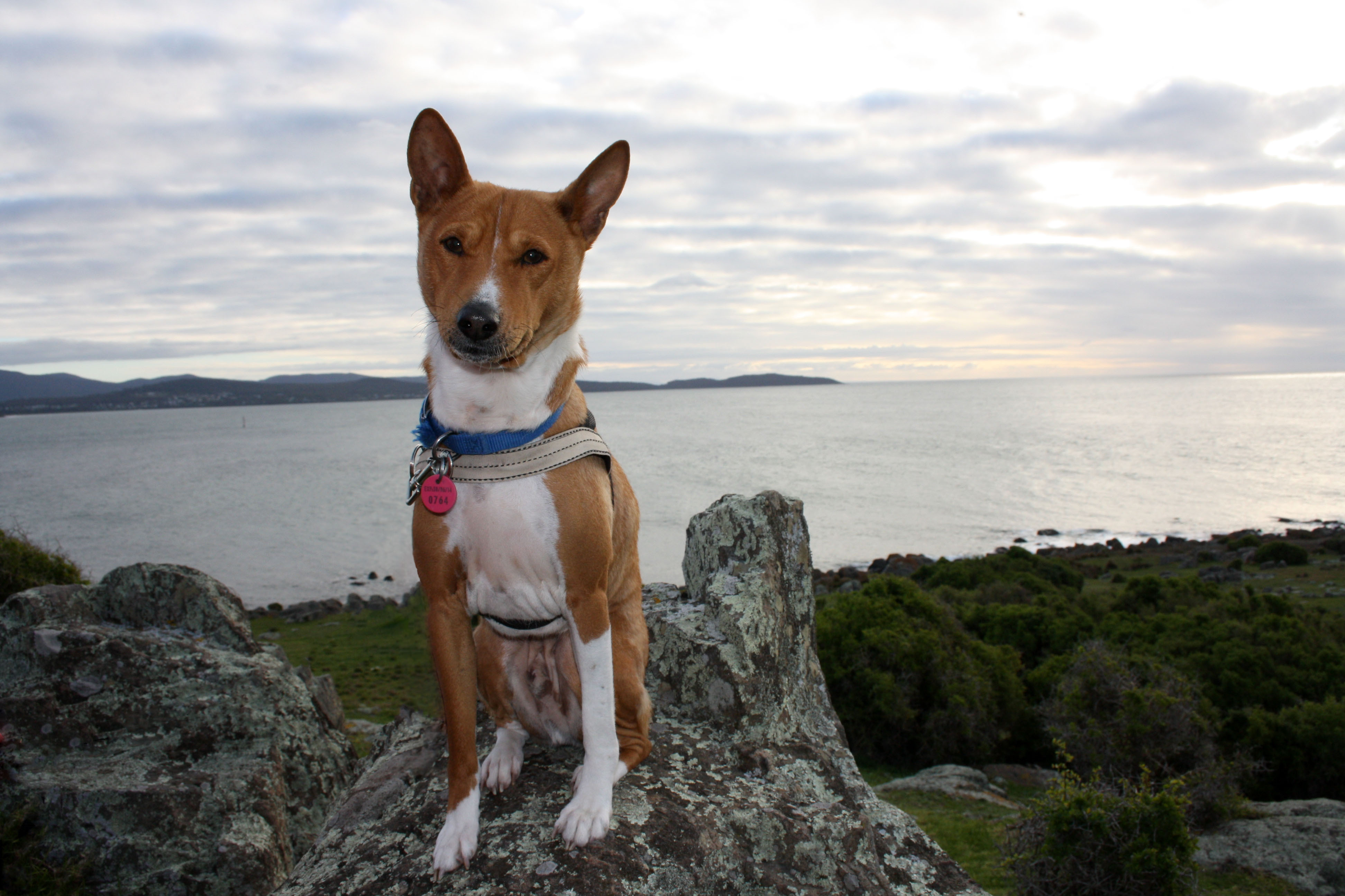 Wallpaper Beautiful dog breed Basenji posing on a rock