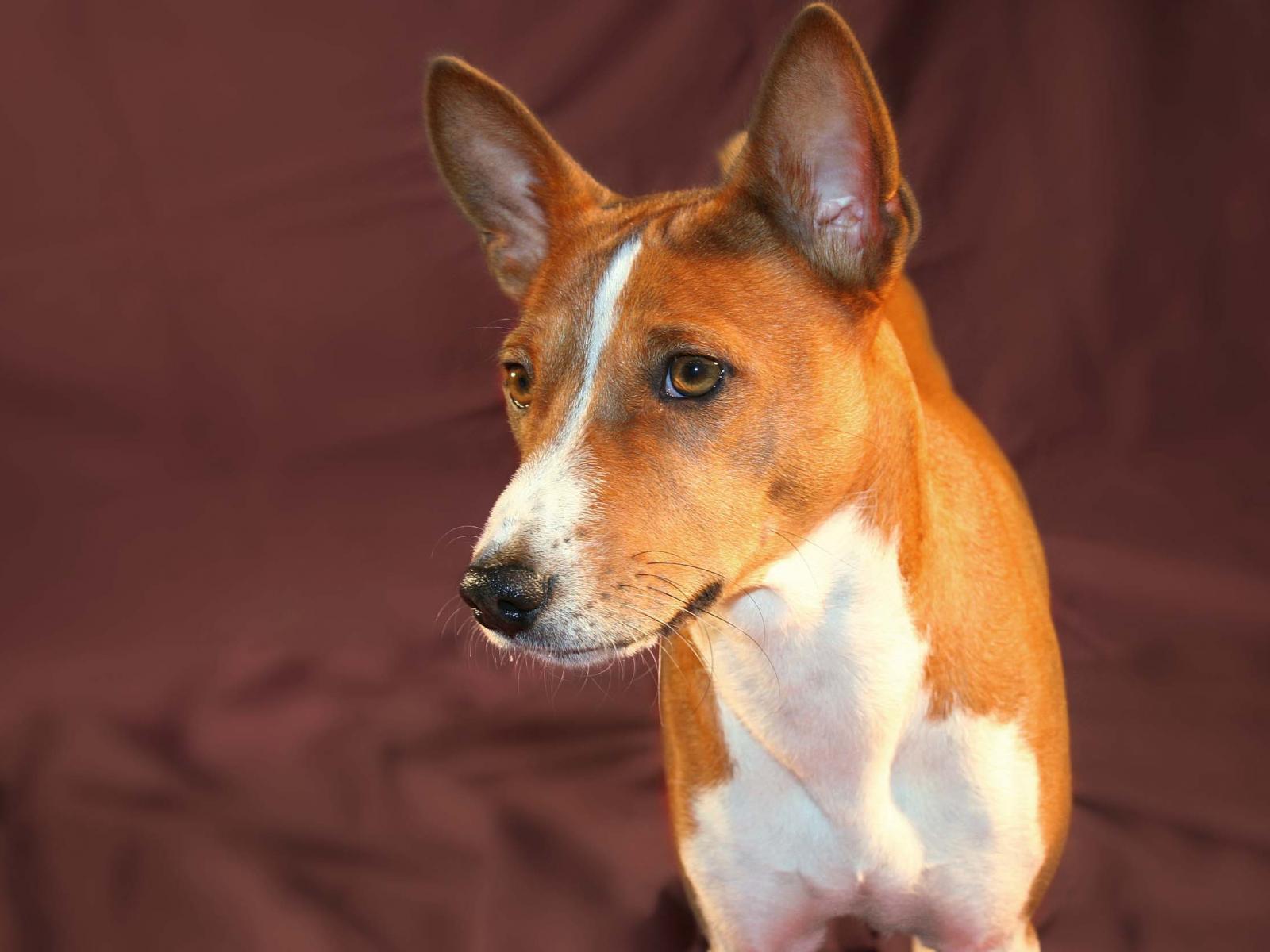 Wallpaper Beautiful dog breed Basenji posing on a burgundy background