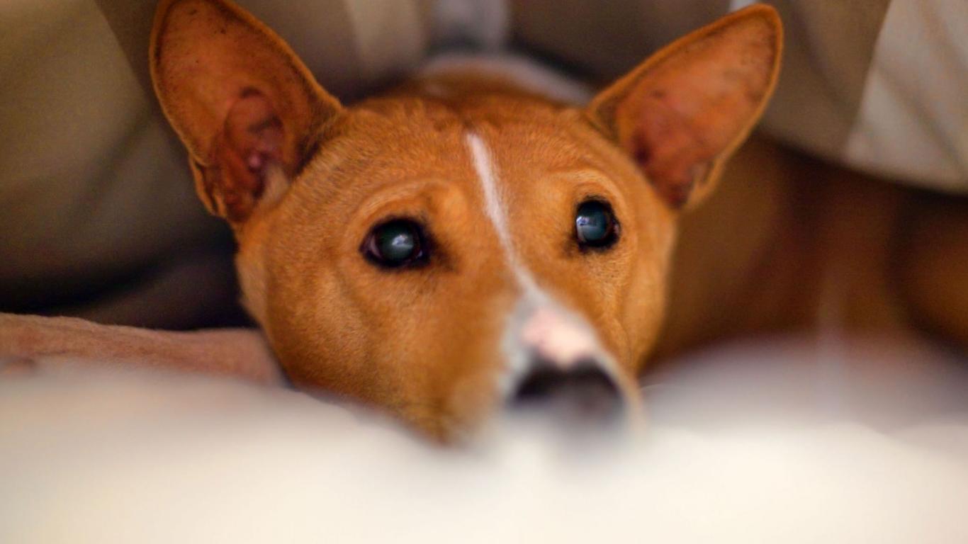 Wallpaper Basenji breed dog hid under a blanket