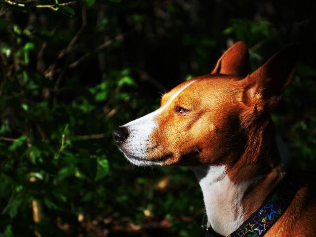 Wallpaper Basenji breed dog on a background bush