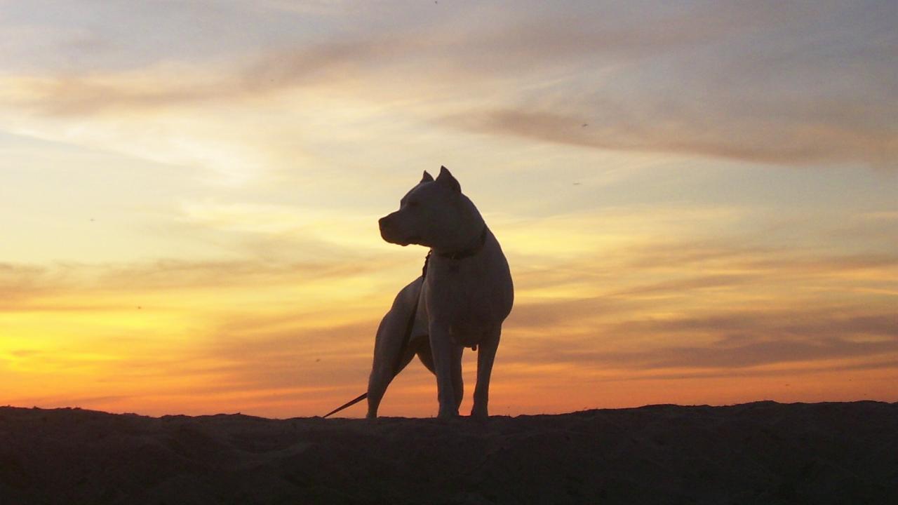 » Wallpaper Dogo Argentino on sunset background