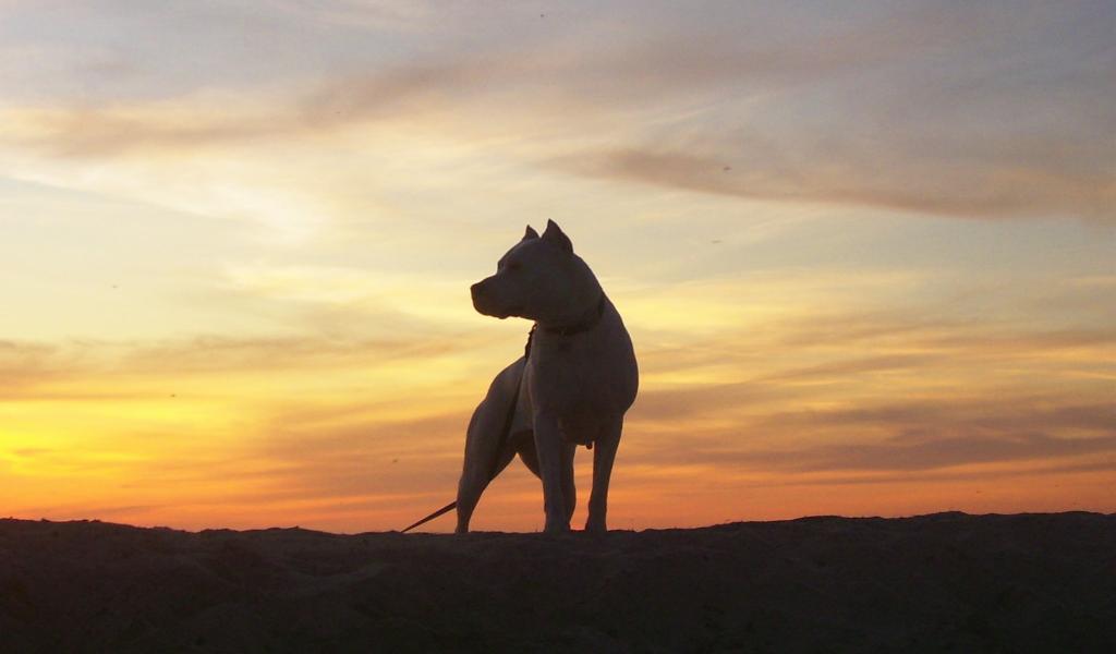 » Wallpaper Dogo Argentino on sunset background