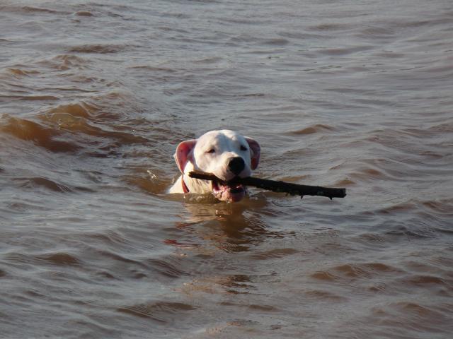 » Wallpaper Dogo Argentino carries a stick
