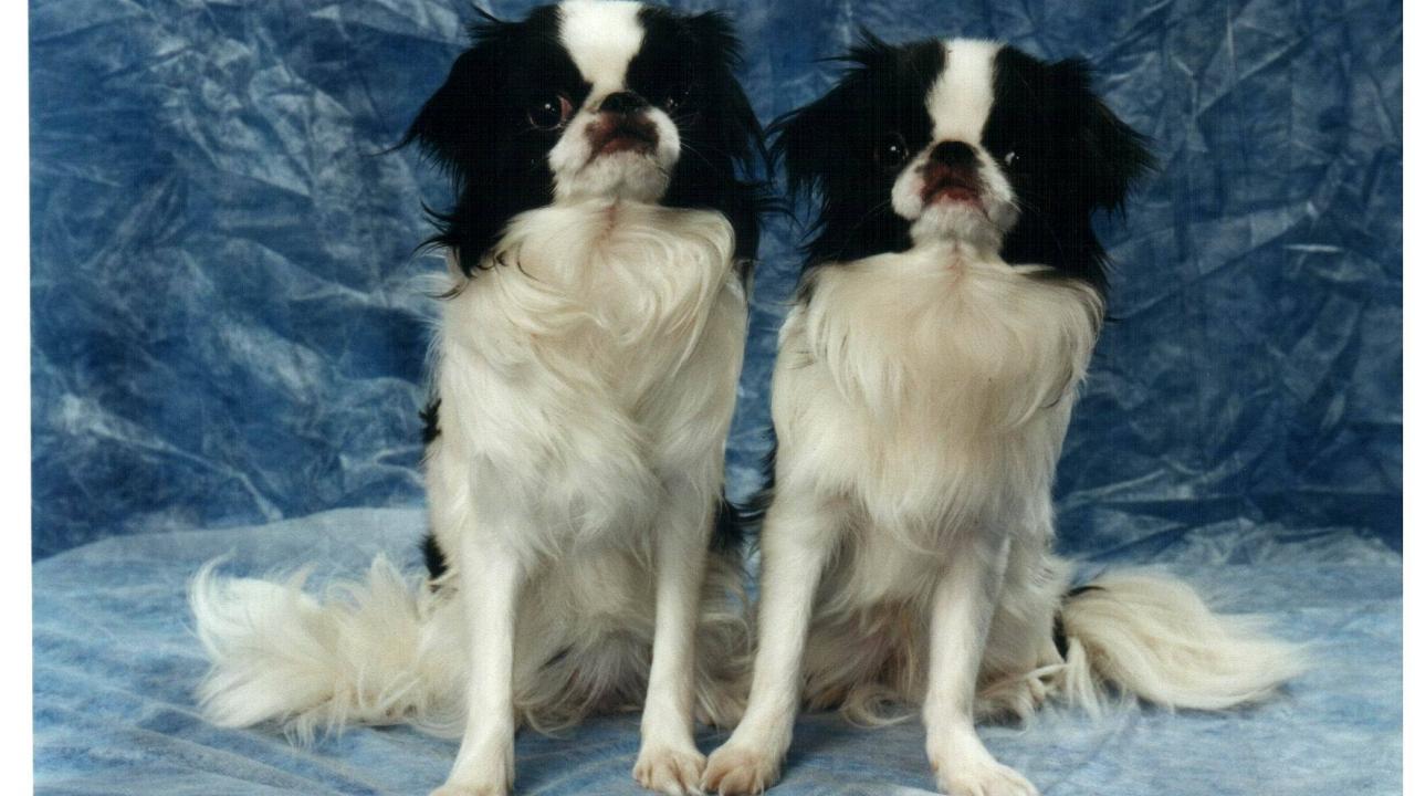 Wallpaper Two Japanese Chin on a blue background