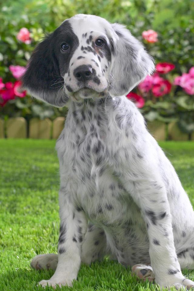 Wallpaper Young English setter on the flower background