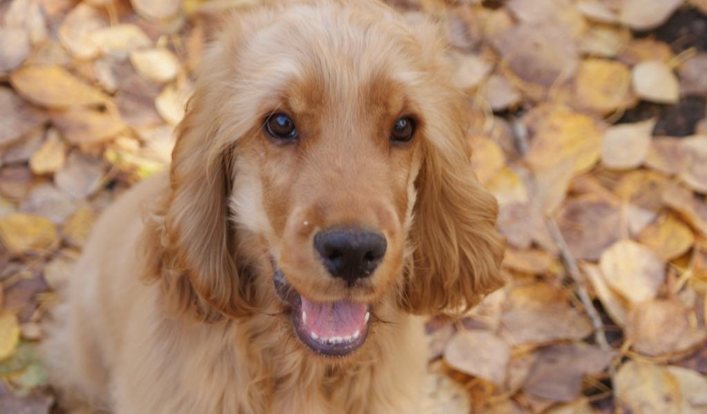 Wallpaper English Cocker Spaniel on autumn leaves