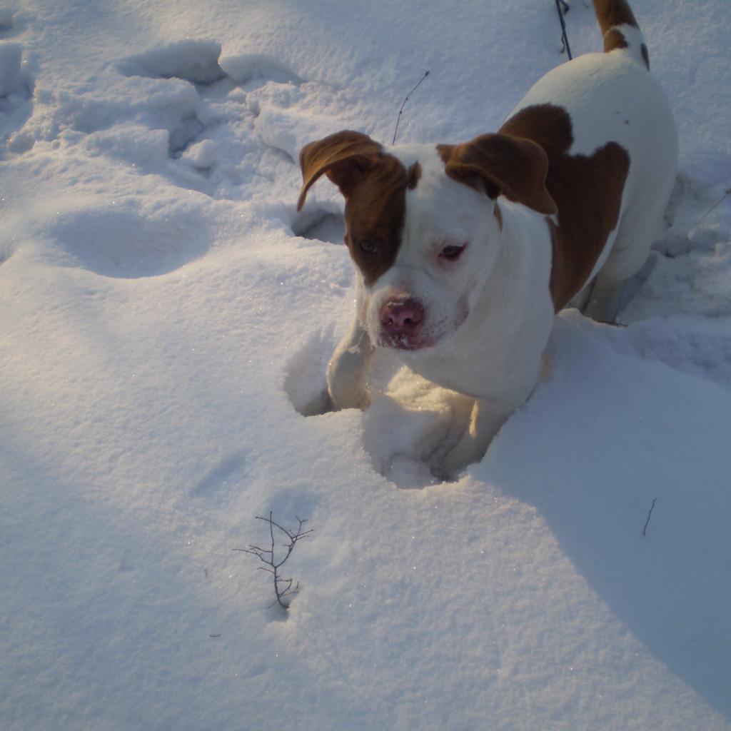 Wallpaper American Bulldog playing in the snow