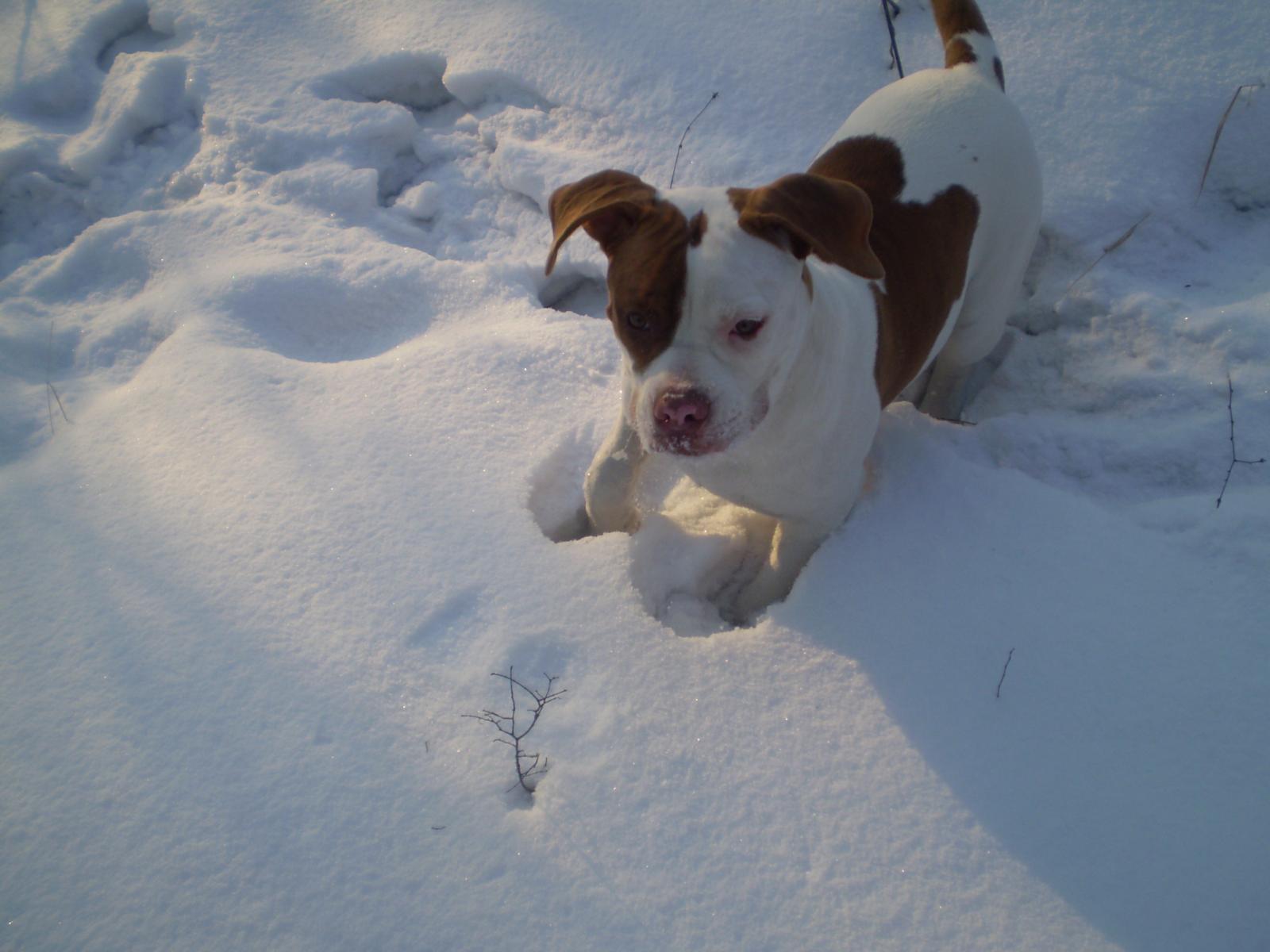Wallpaper American Bulldog playing in the snow