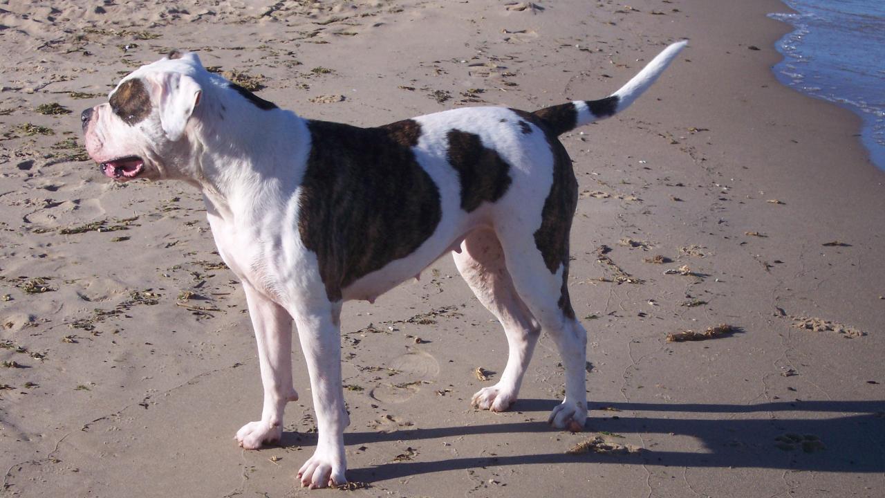 » Wallpaper American Bulldog near the sea