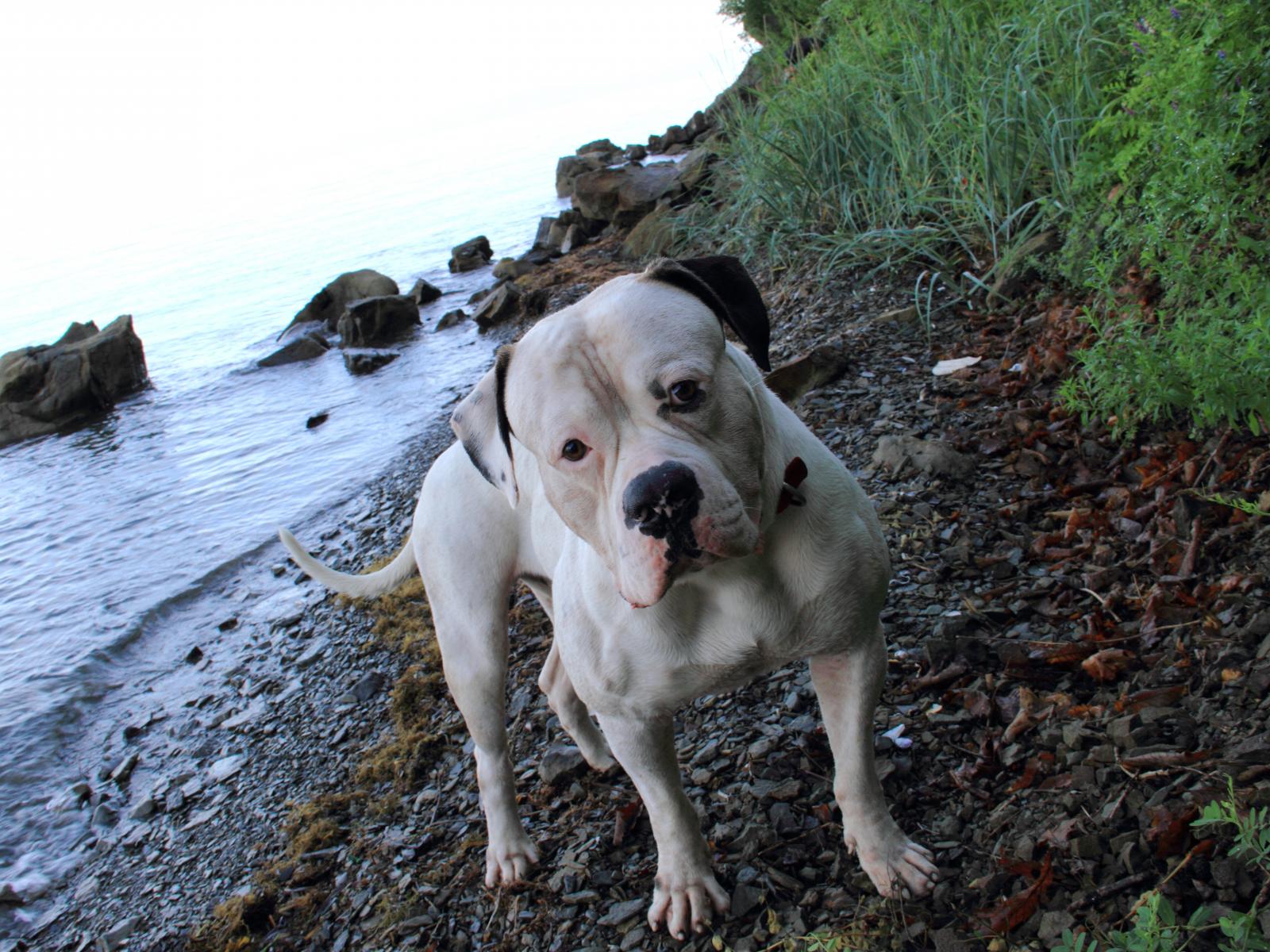 Wallpaper American Bulldog on the shore