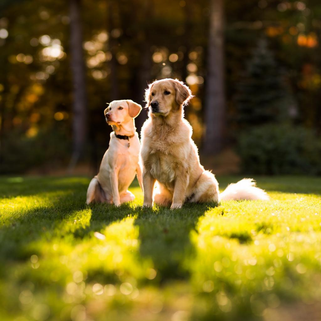 Wallpaper Two dogs are sitting on the grass