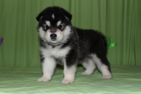 Wallpaper Alaskan malamute puppy on a green background