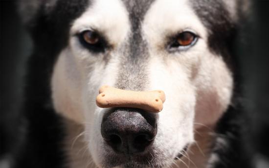 Wallpaper Alaskan Malamute with a treat on his nose