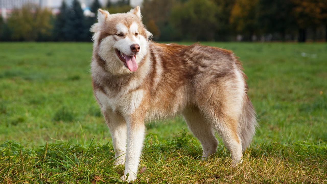 Wallpaper Brown Alaskan Malamute on the grass