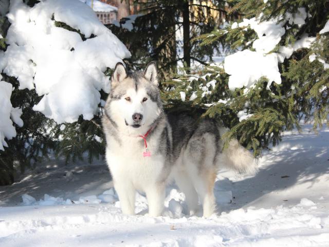 Wallpaper Beautiful Alaskan Malamute stands in the snow