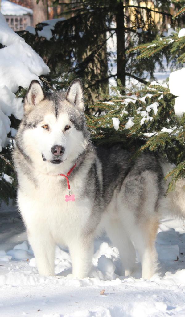 Wallpaper Beautiful Alaskan Malamute stands in the snow