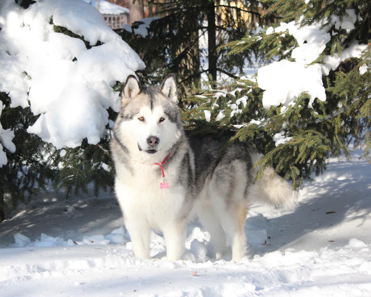 Wallpaper Beautiful Alaskan Malamute stands in the snow