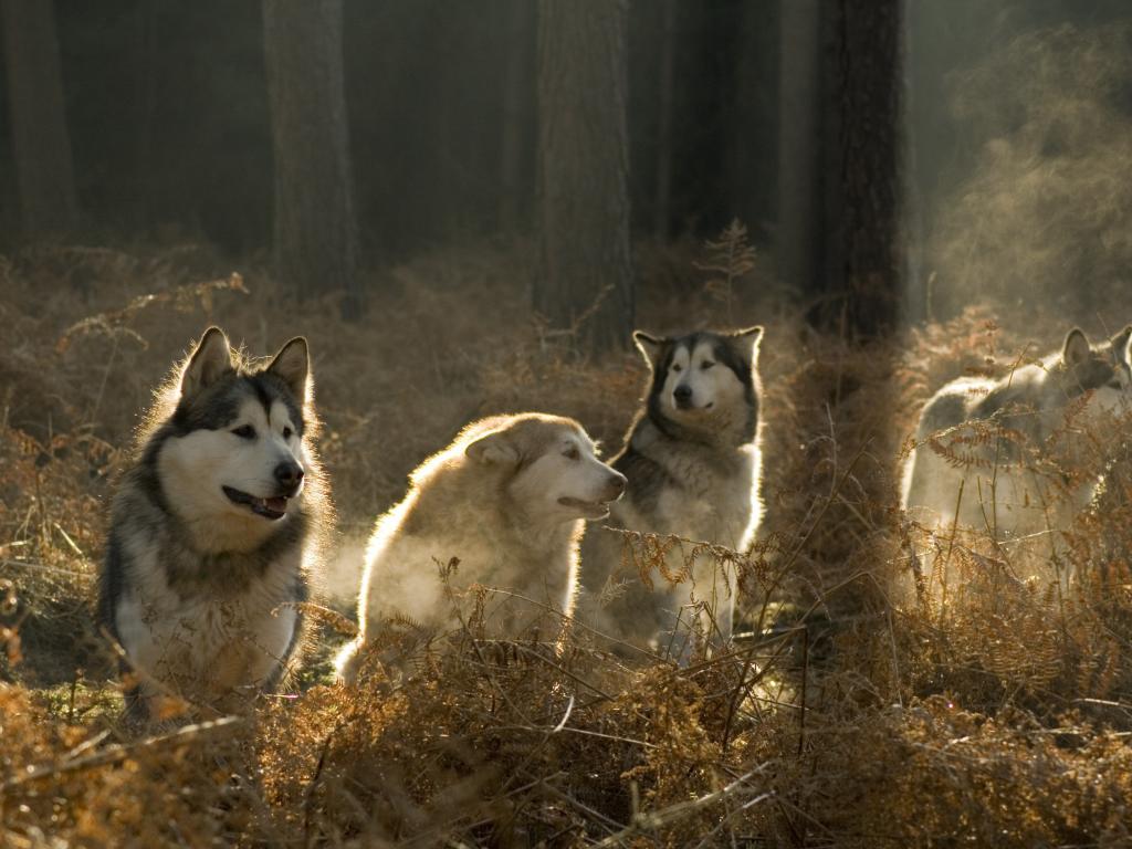 Wallpaper Alaskan Malamutes in the forest