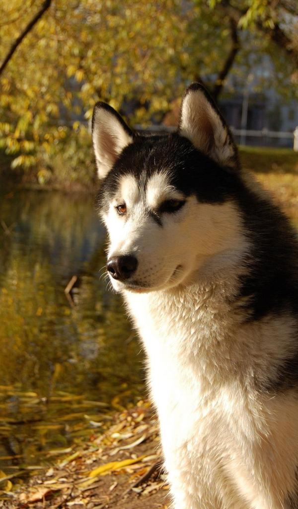 Wallpaper Alaskan Malamute on the lake
