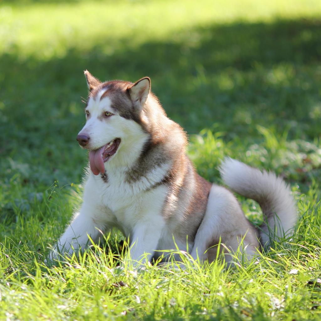 Wallpaper The Alaskan Malamute is sad lying on the grass