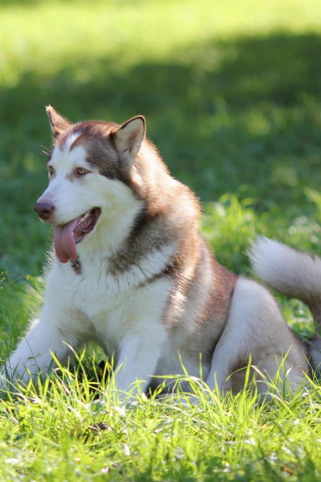 Wallpaper The Alaskan Malamute is sad lying on the grass